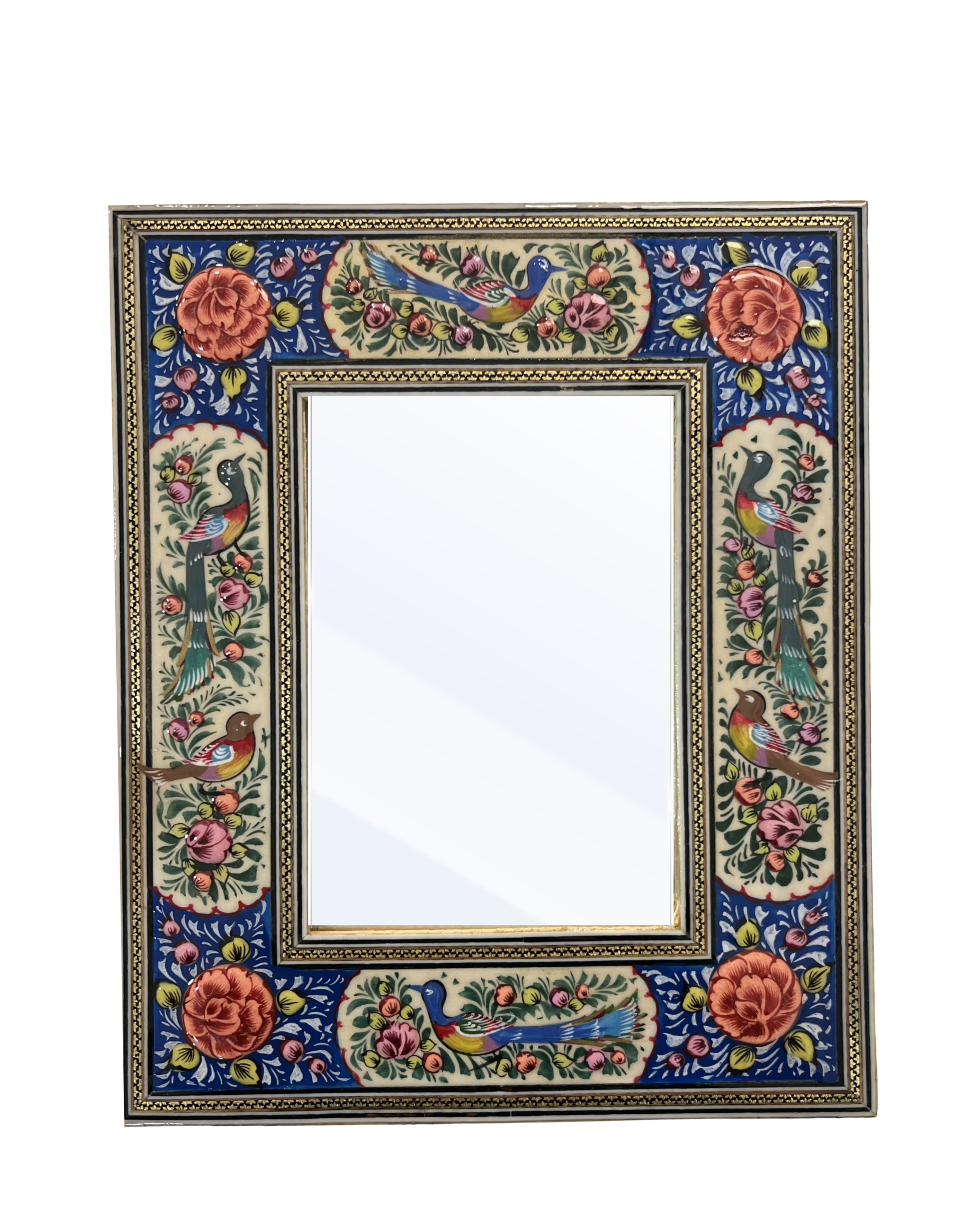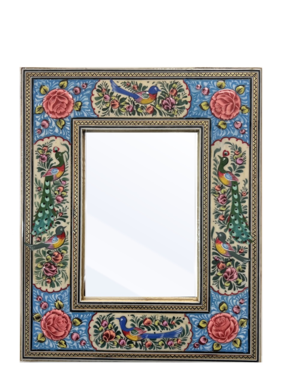آینه خاتم کاری مدل مینیاتور برجسته طرح گل و مرغ از صنایع دستی اصفهان